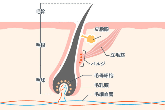 医療レーザー脱毛は、茶色や黒色の毛のメラニン色素にレーザーを反応させ、毛根にある毛を生やす細胞「毛母細胞」を破壊し毛が生えにくい肌へ導きます。メラニン色素にピンポイントで反応させるため、肌へのダメージが少ない脱毛を行うことができます。エステ脱毛と比べ、根本の破壊を行うため、永久的な脱毛を実現します。池袋皮膚科では、この仕組みに基づいた、安全で効果の高い医療脱毛をご提供します。
